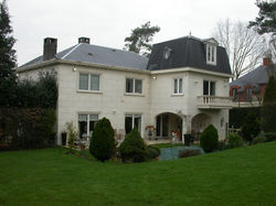 La volumétrie s’intégre avec la partie existante. L'unité d'ensemble est notamment donnée grâces aux choix concernant les revêtements, le type de pente de toit, le style des nouveaux châssis ainsi que ceux du garde-corps de la terrasse.
